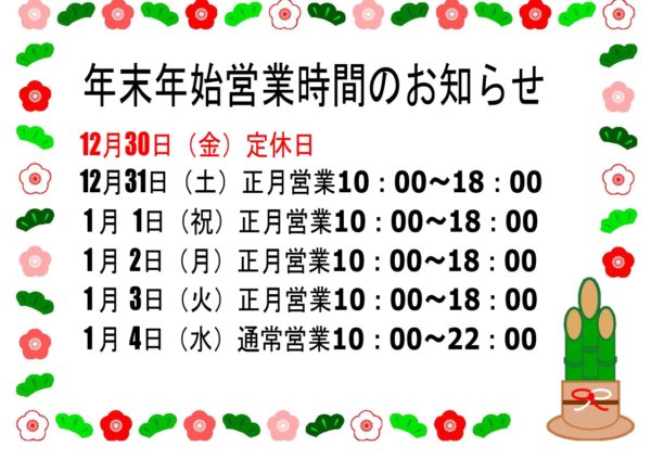 年末年始の営業について