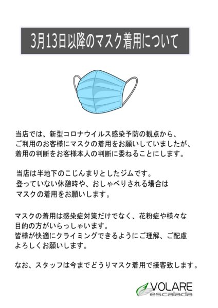 3月13日からのマスク対応について